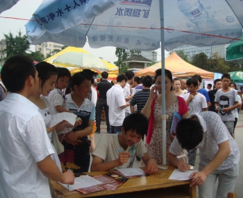 記者從招聘會主辦方順慶區(qū)就業(yè)局了解到,本次招聘會共有市內(nèi)外100余家單位入場招兵買馬,提供了營銷、文秘、教師、服務(wù)員等5000個就業(yè)崗位。當(dāng)日共有7000余人次進場登記求職,簽約人數(shù)達(dá)到3000余人。“這次招聘會最大的亮點就是,兼職崗位占到總提供崗位數(shù)的30%。提供了兼職、短期工崗位的企業(yè)大都招到了員工,要想招穩(wěn)定性較強員工的企業(yè)很少招到人。”就業(yè)局相關(guān)負(fù)責(zé)人說,暑假到了,找暑期短工、做兼職的學(xué)生很多,為此就業(yè)局特別組織了本場招聘會。