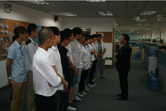 緊接著參觀了青鳥職業教育研究院。研究院的老師和他們做了親切的交談,讓他們切實感受到了這里的學術氛圍濃厚,看著辛勤忙碌的老師,他們肅然起敬,有這樣一支兢兢業業的研究隊伍做技術保障,他們相信自己一定能學到最尖端、最核心的計算機技術。