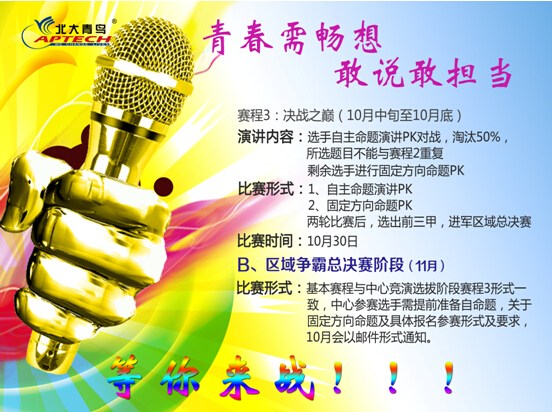 鄭州北大青鳥翔天信鴿“北大青鳥杯”超級演說家中心選拔賽開始啦!